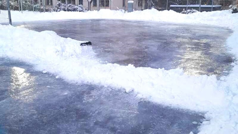 Sofia skola har en basketplan. Där spolas naturis under vintern när vädret tillåter.