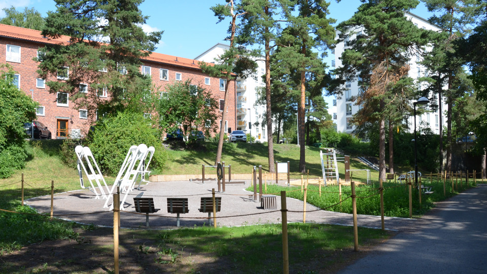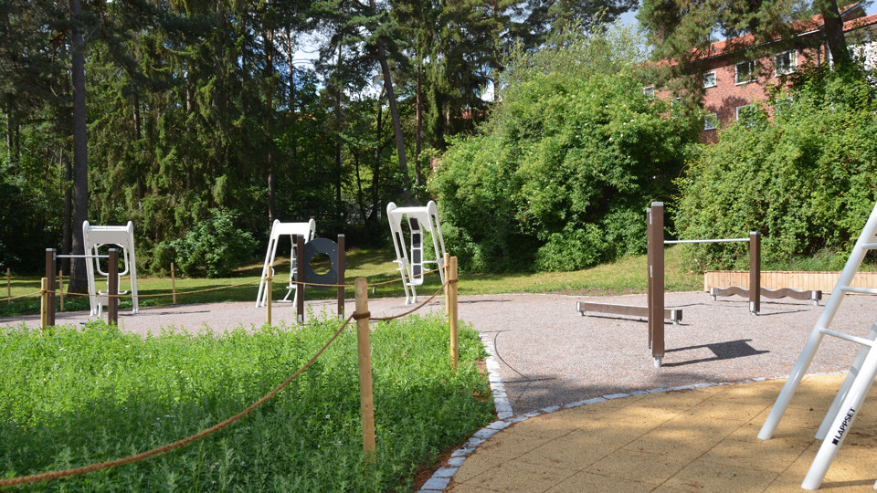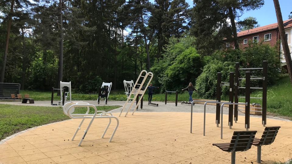 Utegymmet ligger cirka 500 meter från Blackebergs tunnelbana.