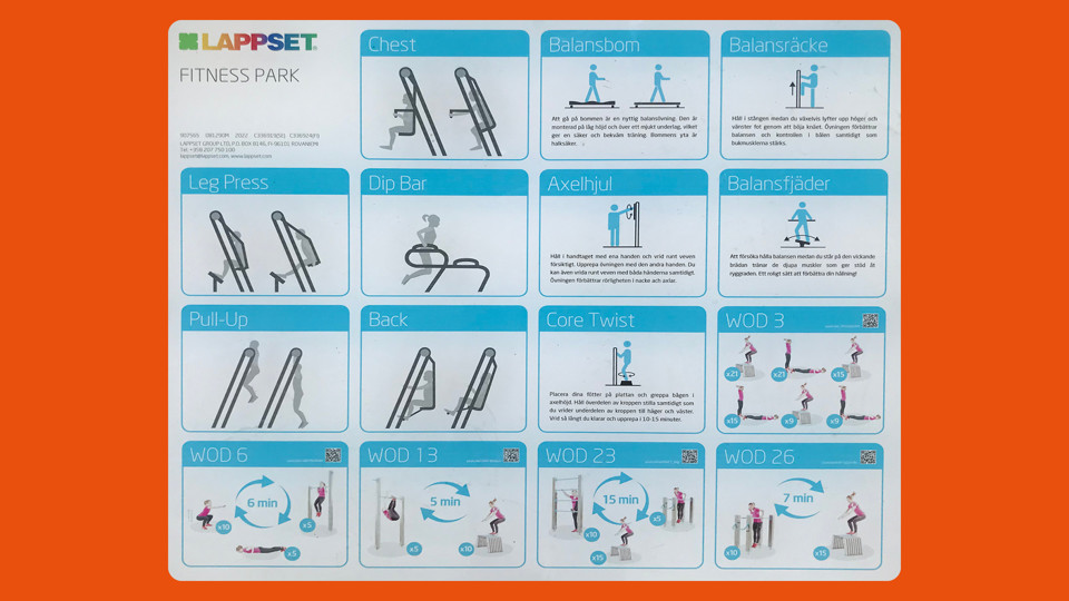 Vid anläggningen finns en skylt som visar tips på övningar.